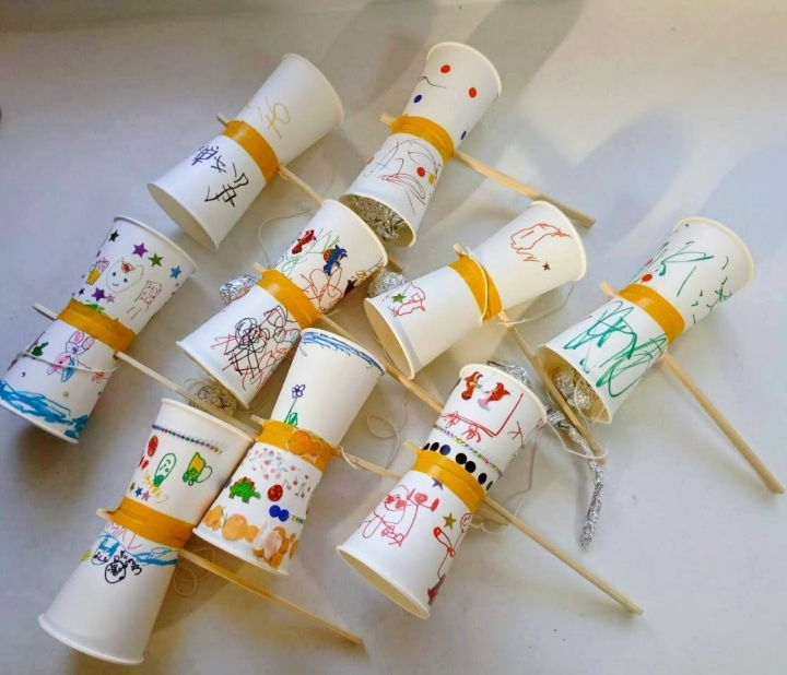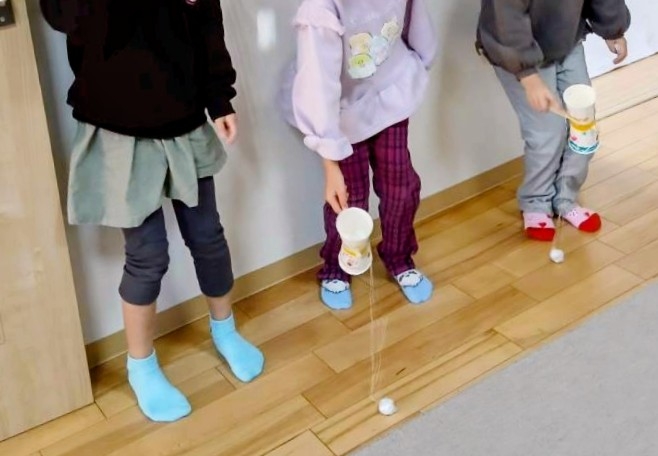 紙コップでけん玉を作りました!