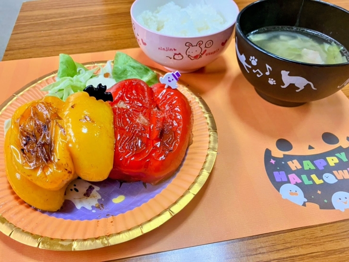 パプリカの肉詰め「ジャックオーランタン定食」です!